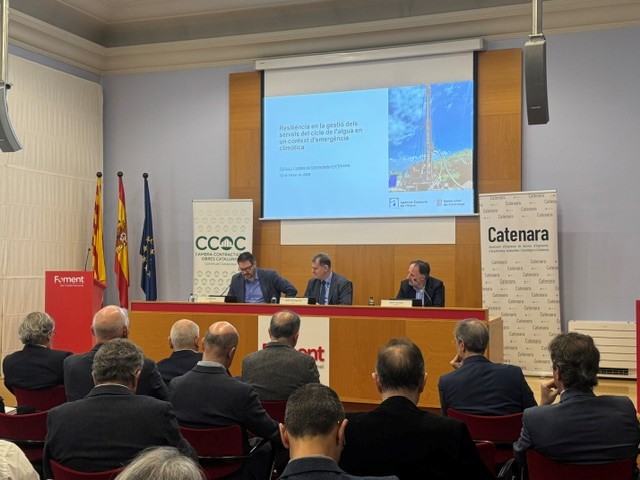 L’acte, celebrat a la seu de Foment del Treball, va reunir representants del sector de la construcció, l’enginyeria i les infraestructures en un espai de reflexió i debat sobre els principals reptes del sistema hídric català davant l’emergència climàtica i la necessitat de garantir el subministrament a la població i a l’activitat econòmica.