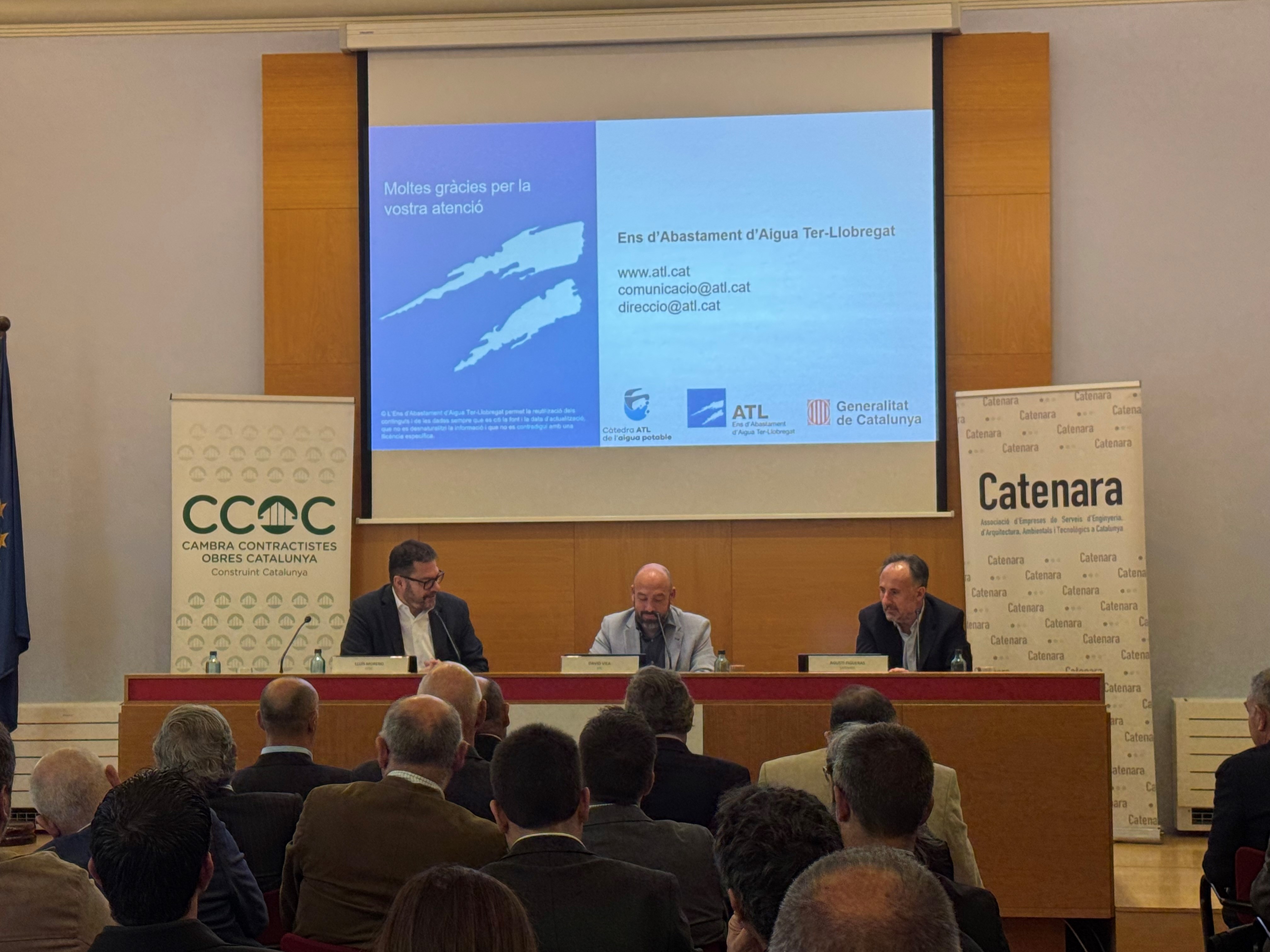 Barcelona, 14 d'abril de 2026. La Cambra de Contractistes d’Obres de Catalunya (CCOC), conjuntament amb CATENARA, va celebrar ahir un esmorzar-col·loqui amb l’Ens d’Abastament d’Aigua Ter-Llobregat (ATL) per analitzar els reptes i les inversions necessàries per garantir la seguretat hídrica a Catalunya.